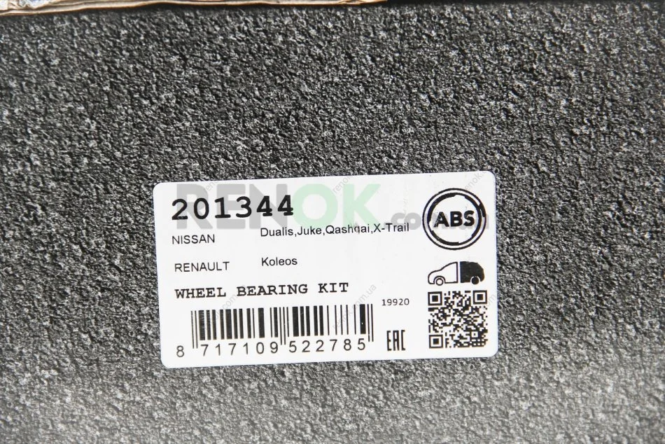 Підшипник маточини задн. Nissan Qashqai 07-/X-trail 1.5-2.0 dCI 07-13/Renault Koleos 08-(+ABS) A.B.S. A.B.S. 201344 (402027585R, 43202EN100, 43202JG200)