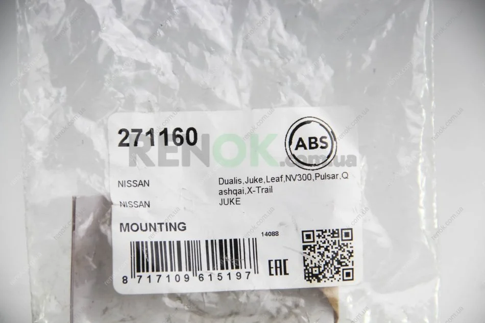 Сайлентблок переднього важеля Qashqai/X-Trail/Koleos 07- (задній) A.B.S. A.B.S. 271160 (545005SN1A, 545015SN1A, 54500JG00B)