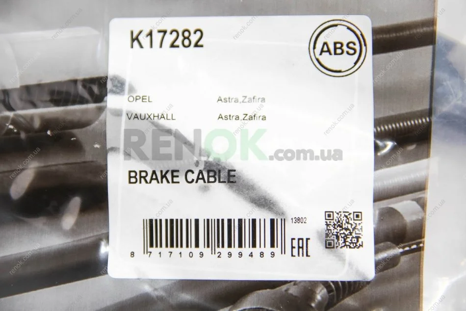 Трос ручного гальма зад. Astra/ Zafira 99-05 (барабан) A.B.S. A.B.S. K17282 (24436467, 522153, 522558)