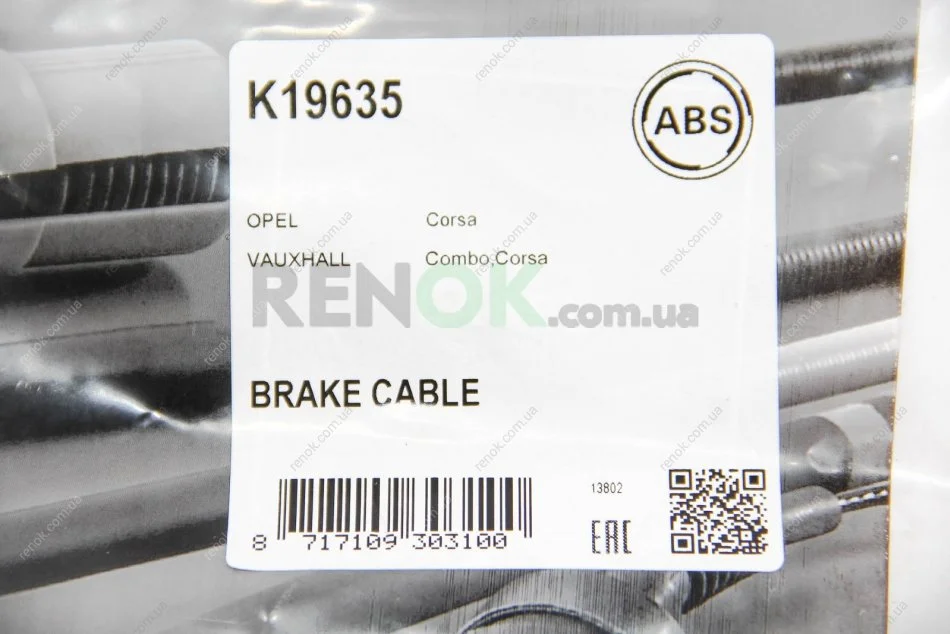 Трос ручного гальма зад. Corsa C 00- Пер. A.B.S. A.B.S. K19635 (522445, 9127187)