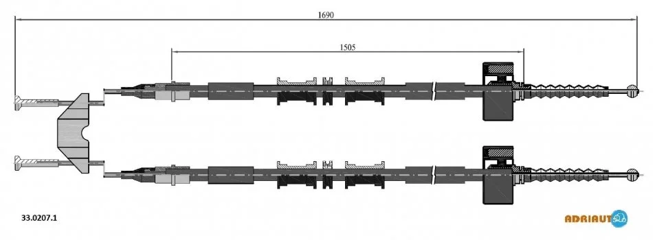 OPEL Трос ручного тормоза задн. (диск) Zafira 1,8-DTi2,0 ADRIAUTO 33.0207.1 (9223133)