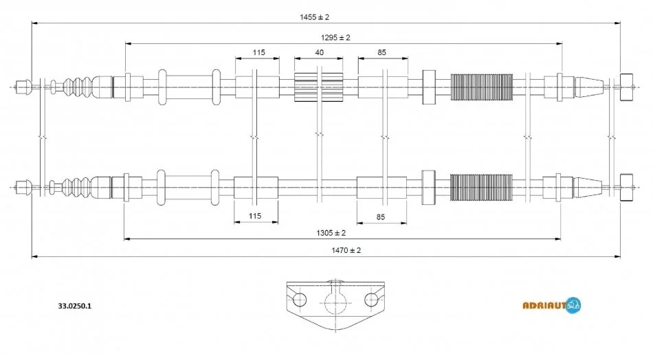 OPEL Трос ручного тормоза задн. 1475/1308+1460/1293 мм CORSA D 06- ADRIAUTO 33.0250.1 (13255755, 13332851, 13355087)
