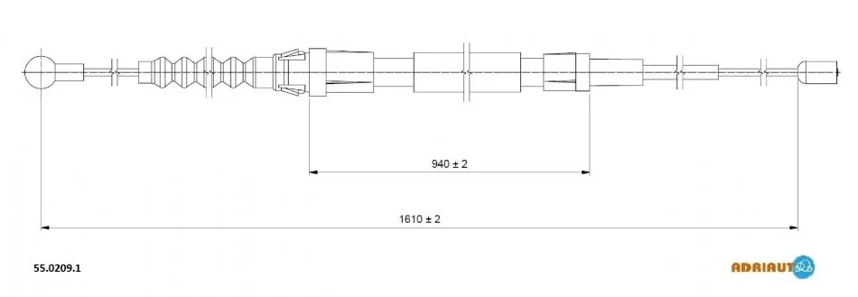 VW Трос ручного тормоза задн. лев./прав. 1610/940 мм TOURAN 03- ADRIAUTO 55.0209.1 (1T0609721M)