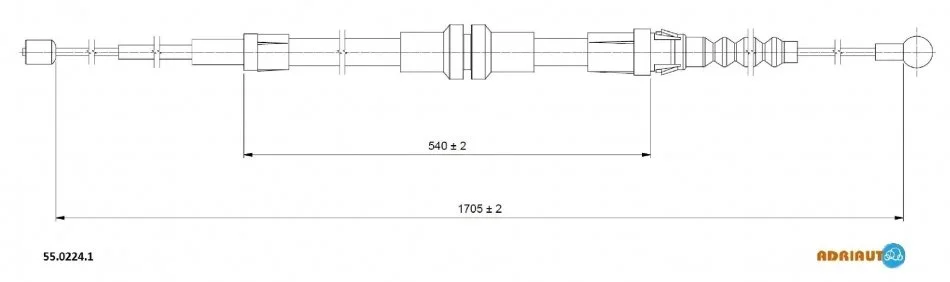 VW Трос ручного тормоза прав/лев Caddy 04-. (1705/540mm) ADRIAUTO 55.0224.1 (2K0609721L, 2K0609721P, 2K5609721B)