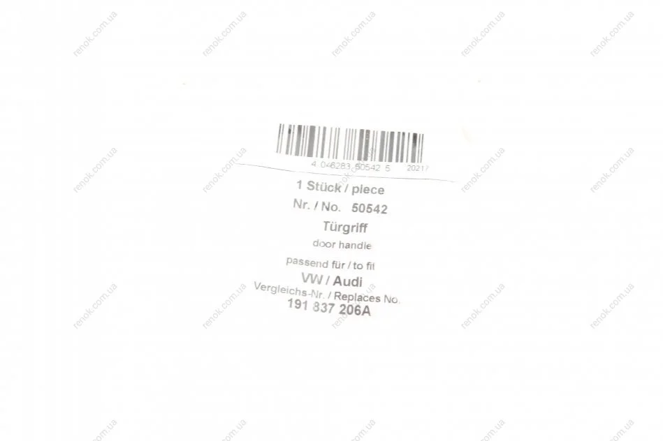 Ручка дверей (передніх/ззовні) (R) VW Golf/Passat 83-88 AIC 50542 (191837206A, 191837206, 321837206)