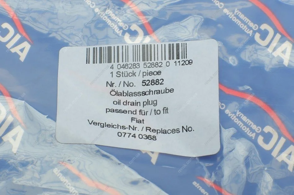 Болт зливу оливи Citroen Jumpy/Peugeot Expert 1.6 95-00 (M22x1.5) AIC 52882 (55189930, 60801006, 60808630)