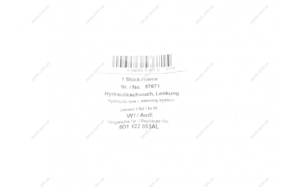 Шланг гідропідсилювача Audi A4/VW Passat 1.6-2.0 94-05 AIC 57671 (8D1422893AL)