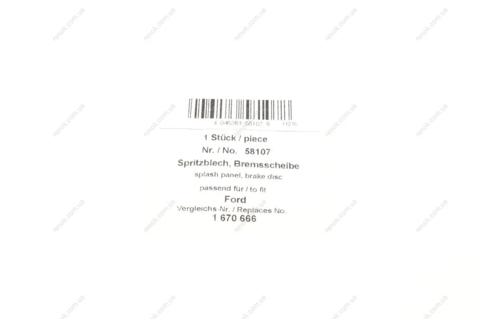 Захист диска гальмівного (переднього) Ford Focus/Mazda 3 04-12 AIC 58107 (1368457, 1670666, 4N512C447BD)