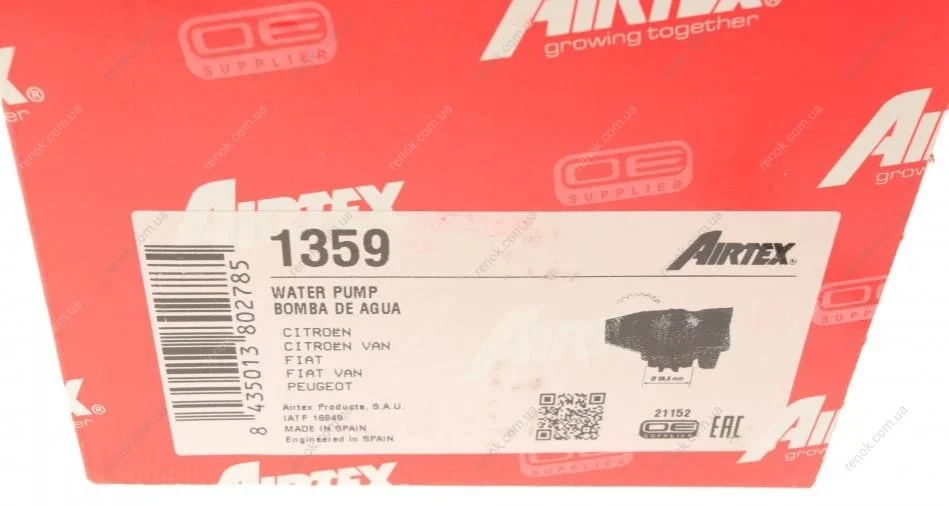 Водяний насос Berlingo/Partner 1.8i 97- AIRTEX 1359 (120150, 95655208, 120161)
