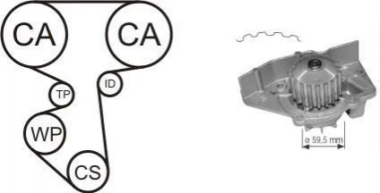 CITROEN К-кт ГРМ (помпа с прокл. + ремень + 2 ролика) XANTIA 1.8 95-01, XSARA Break 1.8 97-00, PEUGEOT 306 1.8 97-01 AIRTEX WPK-156402
