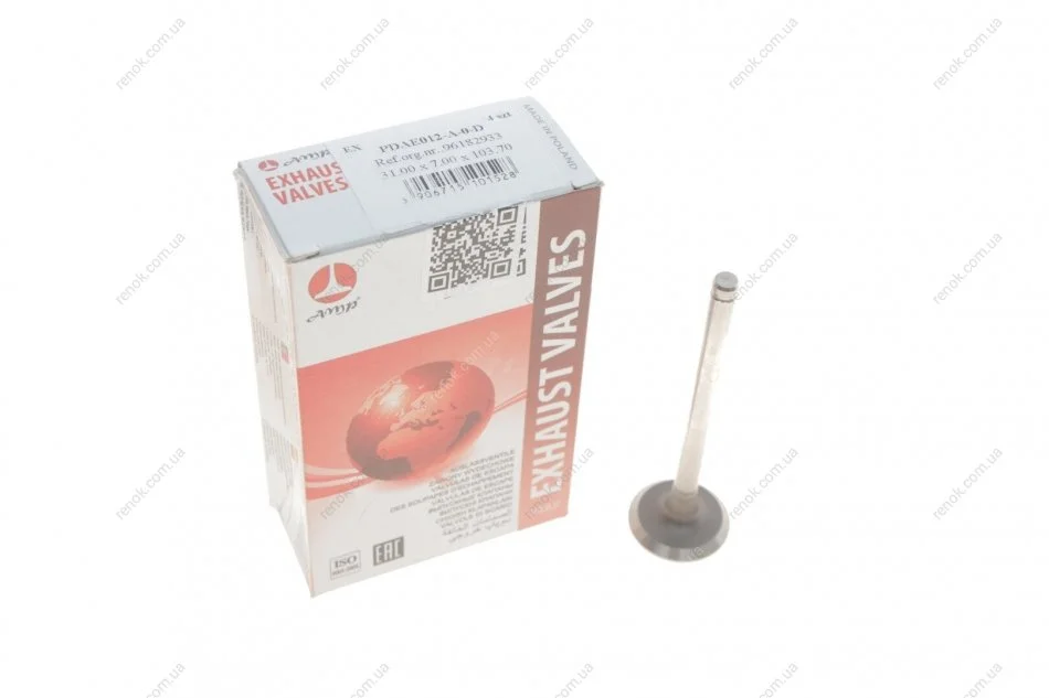 Клапан (випуск) Daewoo Lanos 1.4i/1.5i 97- (31x7x103.7) (вальцювання) AMP PDAE012-A-0-D