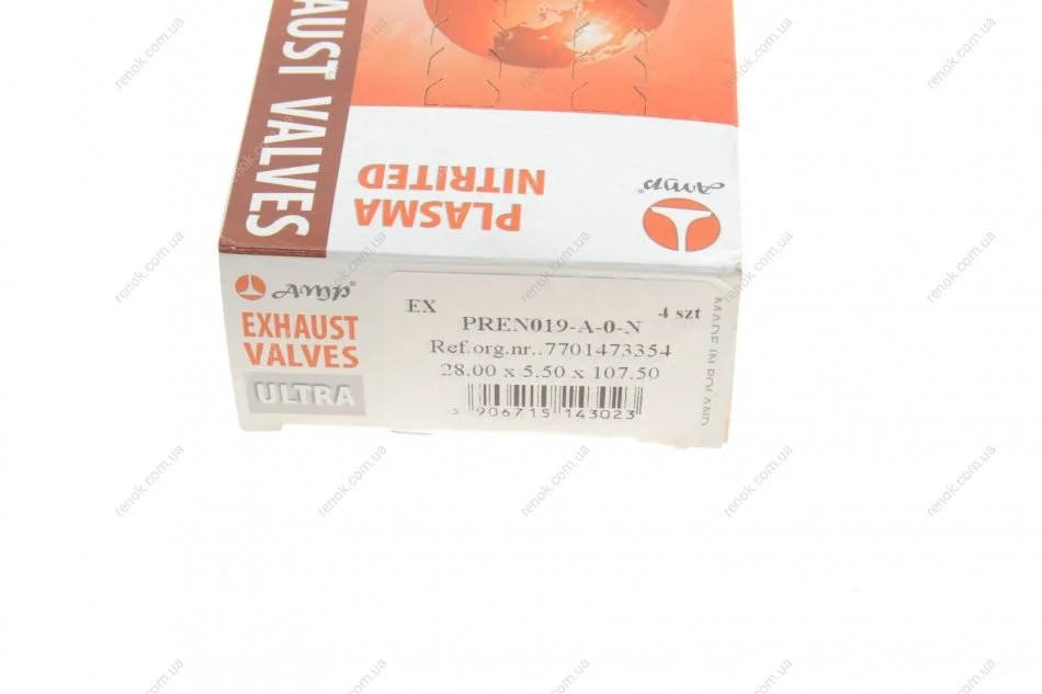 Клапан (випуск) Renault Kangoo 1.6 16V 01- (28x5.5x107.5) (азотований) AMP PREN019-A-0-N (7701473354, 7701471379, 1320200QAA)