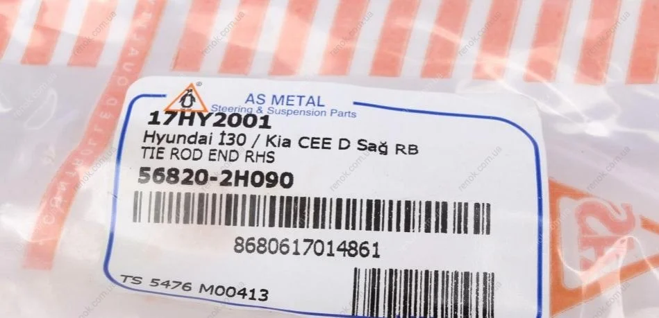 Наконечник тяги рульової (R) Hyundai i30/Kia Cee'D 06- ASMETAL 17HY2001 (568202H090)
