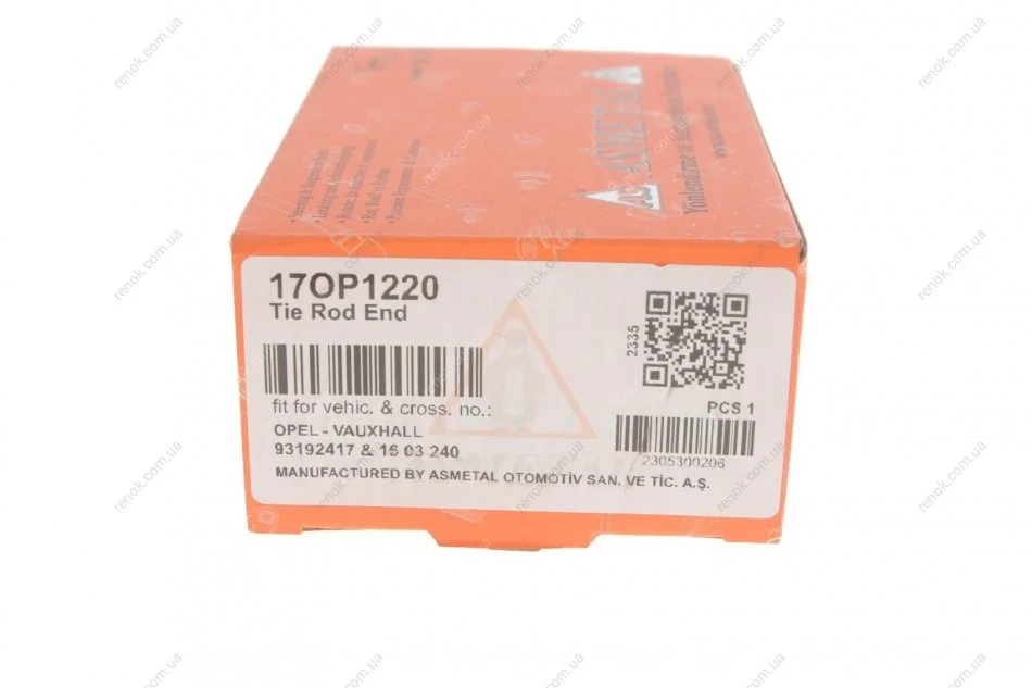 Наконечник тяги рульової Opel Meriva A 03-10 ASMETAL 17OP1220 (1603240, 1603430, 26102923)