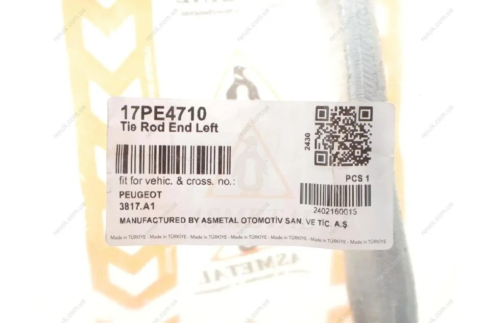 Наконечник рульової тяги Peugeot 508 10-18 Л. ASMETAL 17PE4710 (3817A1)