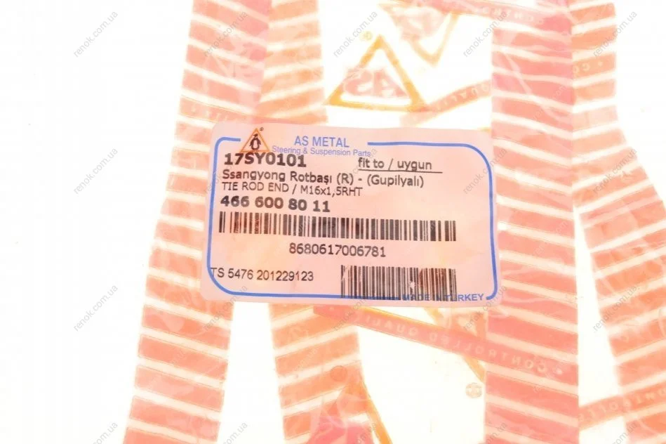 Наконечник тяги рульової (R) Ssangyong Actyon/Kyron/Rexton 02- (= 17SY0101GP) ASMETAL 17SY0101 (4666009011, 4666008011)