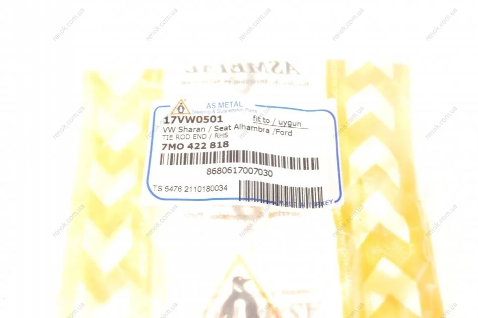 Наконечник тяги рульової (R) VW Sharan/Ford Galaxy 1.8-2.8 95-10 (L=222mm) ASMETAL 17VW0501 (vtr364, 1058378, 1092377)
