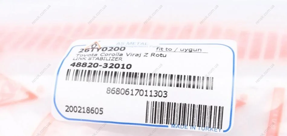 Тяга стабілізатора (переднього) Toyota Corola/Camry/Rav 4 II 00-08 (L=285 мм) ASMETAL 26TY0200 (546164A00B, 42420M68K00, 4882032010)