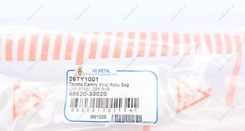 Тяга стабілізатора (переднього) (R) Toyota Camry/Solara 96-08 (L=285mm) ASMETAL 26TY1001 (4882006030, 4882033020)