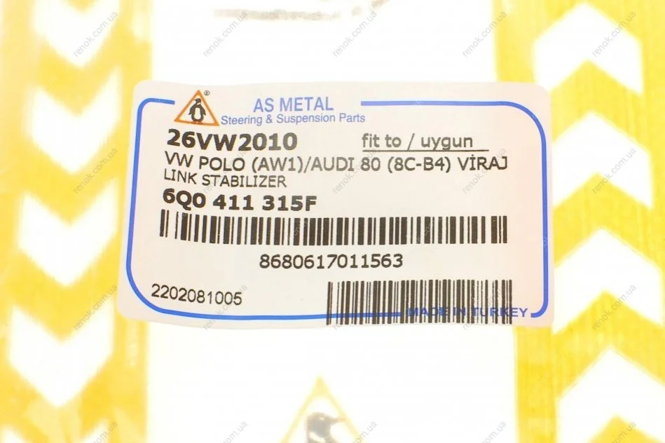Тяга стабілізатора (переднього) Skoda Fabia 99-/Roomster 06-15/Rapid 12-/VW Polo 01- = 26AU0100 ASMETAL 26VW2010 (6Q0411315A, 6Q0411315B, 6Q0411315C)
