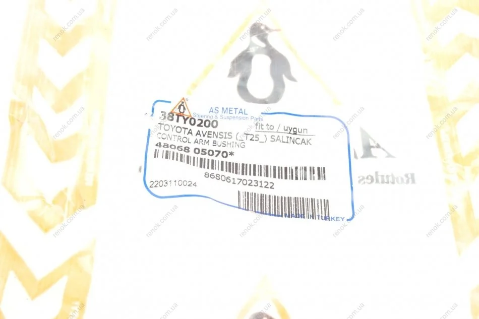 Сайлентблок важеля (переднього/знизу/ззаду) Toyota Avensis/Corolla 1.4-2.4/2.0-2.2D 02-08 ASMETAL 38TY0200