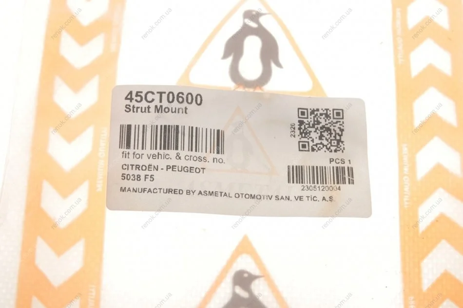 Комплект опори амортизаційної стійки ASMETAL 45CT0600 (5038A9, 5038F5)