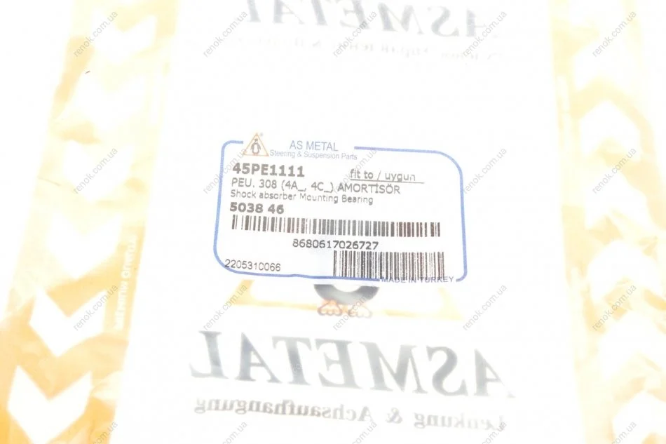Подушка амортизатора (переднього) + підшипник Citroen Berlingo 08- ASMETAL 45PE1111 (503177, 5031F0, 5031F1)
