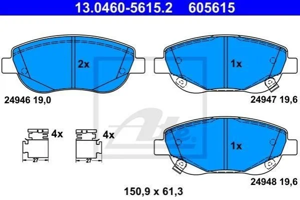 Гальмівні колодки, дискові ATE 13.0460-5615.2 (0446505260)