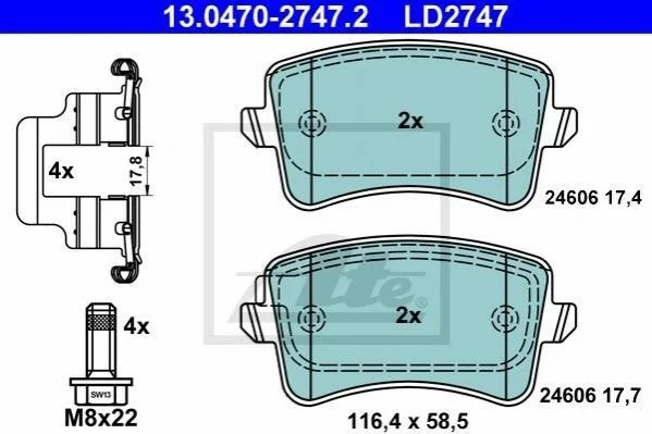 Гальмівні колодки, дискові ATE 13.0470-2747.2 (8K0698451A, 8K0698451B, 8K0698451C)