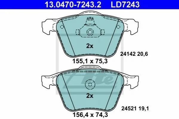 Гальмівні колодки, дискові ATE 13.0470-7243.2 (1423389, 1431178, 1405511)