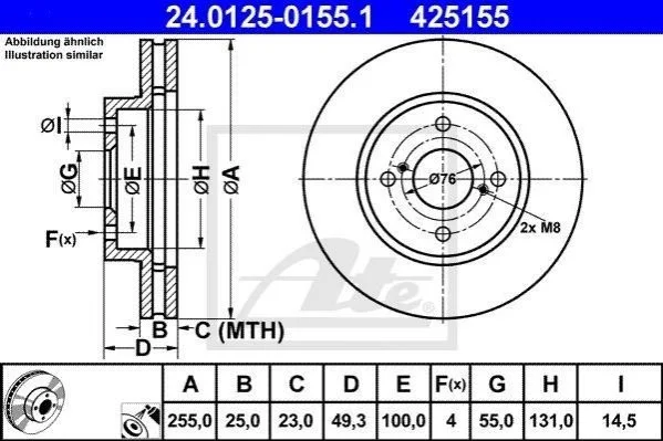 Диск гальмівний ATE 24.0125-0155.1 (4351213030, 4351247020, 4351202070)