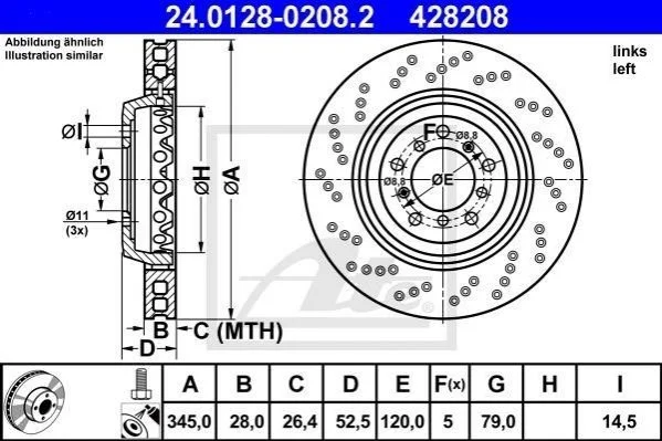 Гальмівний диск двосекційний ATE 24.0128-0208.2 (34112282445)