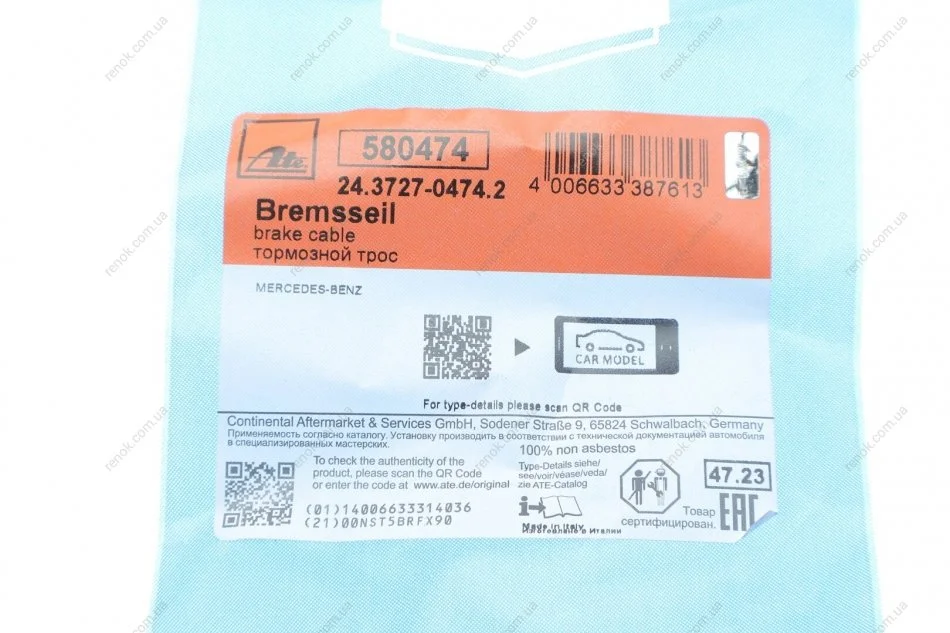 Трос гальмівний ATE 24.3727-0474.2 (9064202285, 9064205185, A9064202285)