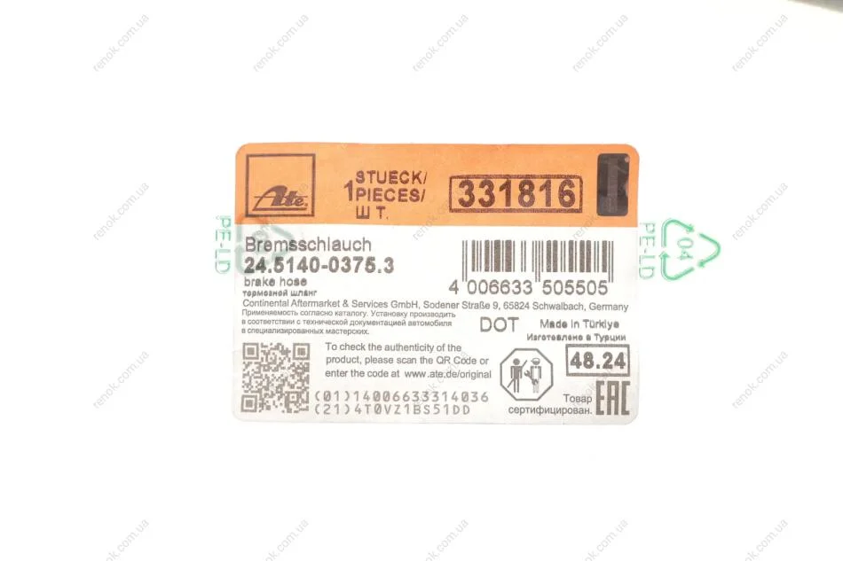 Шланг гальмівний ATE 24.5140-0375.3 (2464200148, A2464200148)