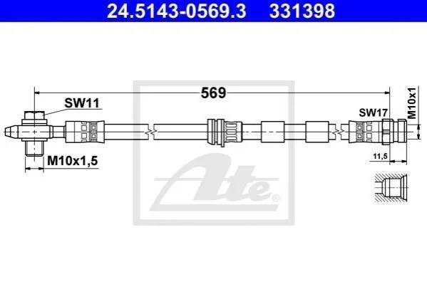 Гальмівний шланг ATE 24.5143-0569.3 (1J0611701B, 1J0611701C, 1J0611701D)