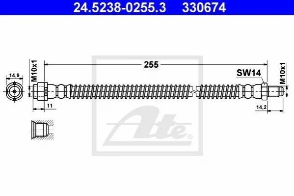 Гальмівний шланг ATE 24.5238-0255.3 (2114200648, 2114200548, A2114200548)