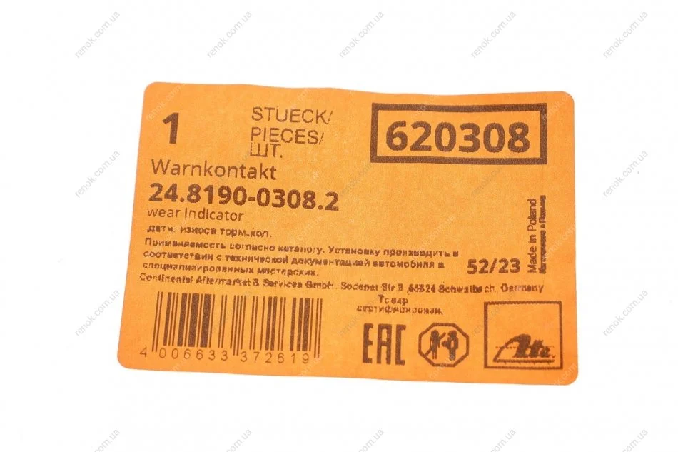 Сигналізатор, знос гальмівних колодок 620308 / ATE 24.8190-0308.2 (34356791963)