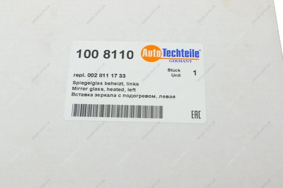 Скло дзеркала (з підігрівом) MB Sprinter 06- (L) (верхнє) (8110) AUTOTECHTEILE 100 8110 (0028111733)
