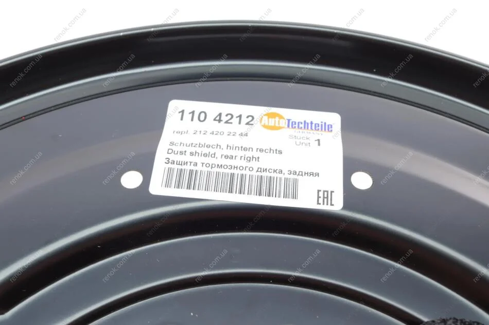 Захист диска гальмівного (заднього) (R) MB C-class (W204) 07-14/E-class (W212) 09-16 AUTOTECHTEILE 110 4212 (2124202244, 2124200444, A2124200444)