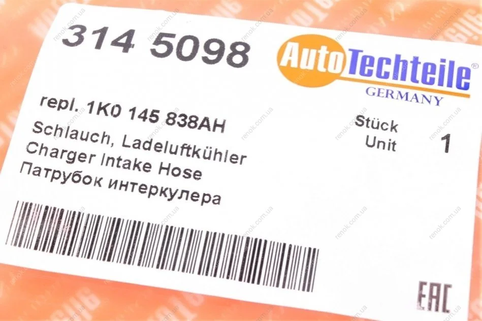 Патрубок інтеркулера VW Caddy 1.6/2.0 TDI 10- AUTOTECHTEILE 314 5098