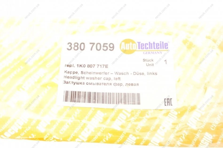 Заглушка омивача фар, ліва AUTOTECHTEILE 380 7059