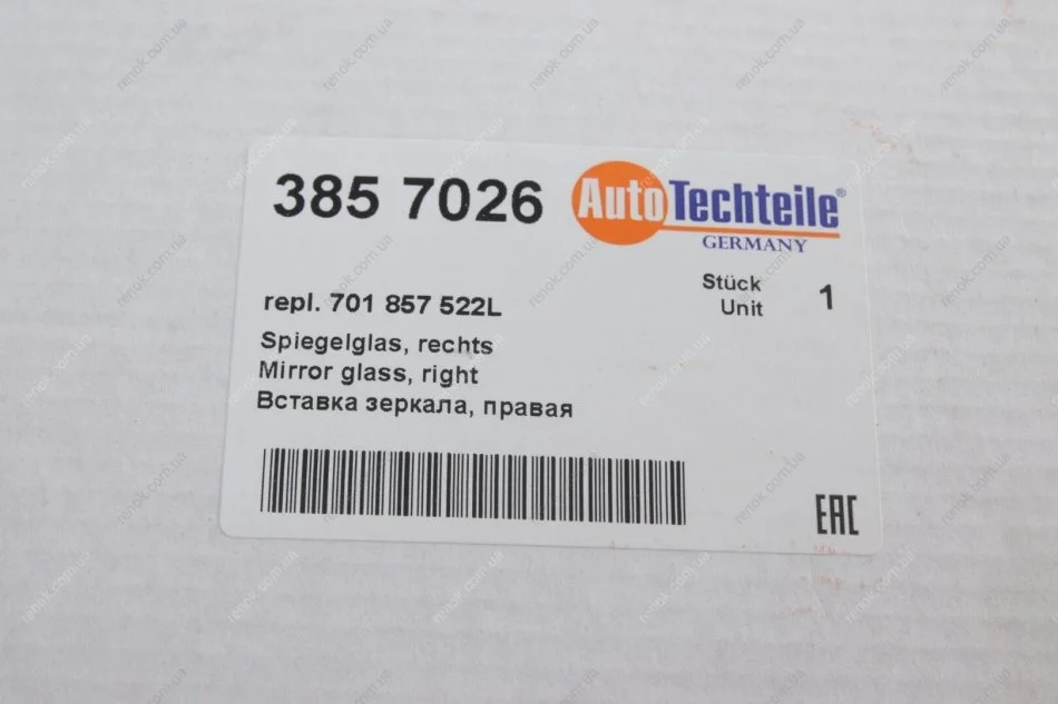 Скло дзеркала VW T4 91- (R) (8570.26) AUTOTECHTEILE 385 7026