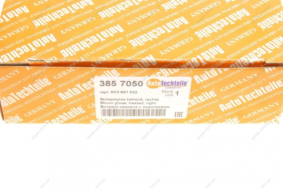 Скло дзеркала (з підігрівом) VW Touaran/Golf VI 08-15 (R) AUTOTECHTEILE 385 7050