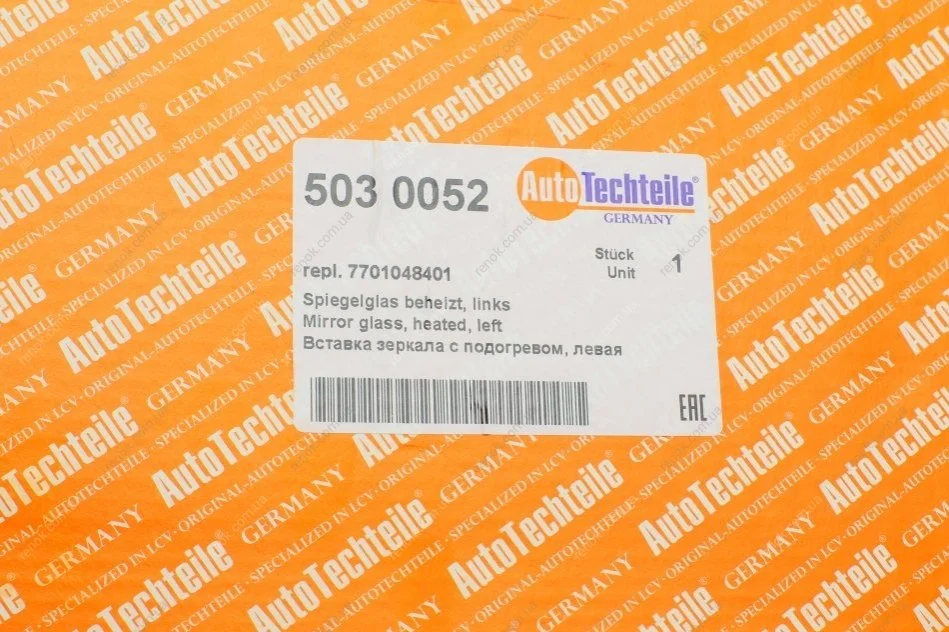 Скло дзеркала (з підігрівом) Renault Kangoo 97- (L) AUTOTECHTEILE 503 0052 (8200253494, 8200245172, 7701048401)