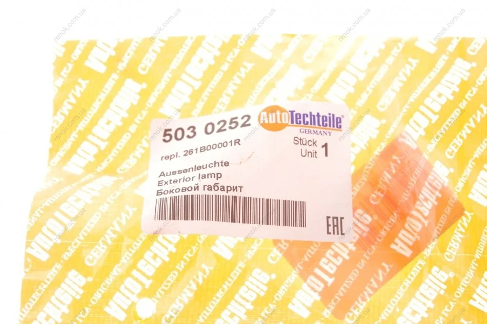 Ліхтар бічний (габарит) Renault Master/Opel Movano 10- (жовтий) AUTOTECHTEILE 503 0252 (261B00001R, 261B00001R1)