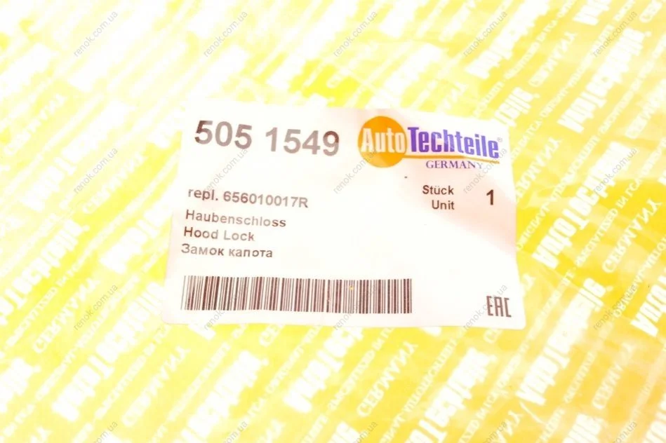 Замок капота Renault Duster 10- AUTOTECHTEILE 505 1549 (656010017R)