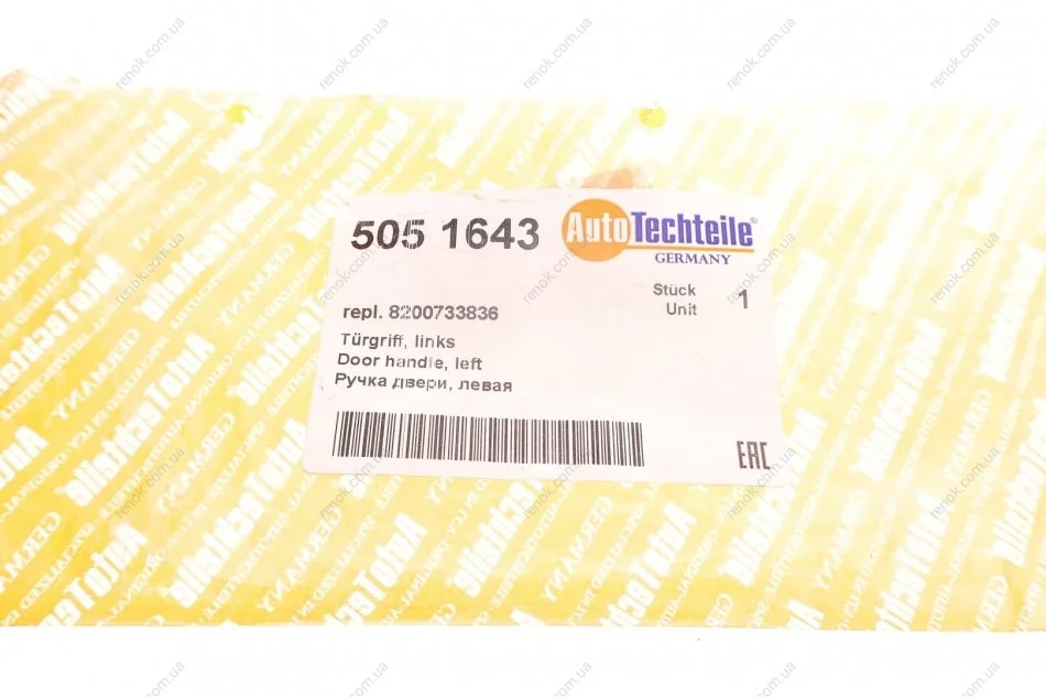 Ручка дверей, ліва AUTOTECHTEILE 505 1643 (8200733836, 806074969R)