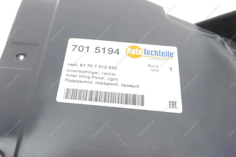 Підкрилок (передній/передня частина) BMW 5 (F10) 10-17 (R) AUTOTECHTEILE 701 5194