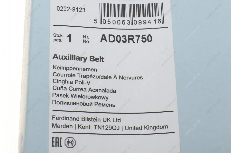 Ремінь генератора Dacia Logan/ Sandero 1.2 12- /Suzuki Alto 1.1 04-08 / Toyota Camry 2.2 96-01 BLUE PRINT AD03R750 (117207719R, 8200830183, 8200041848)
