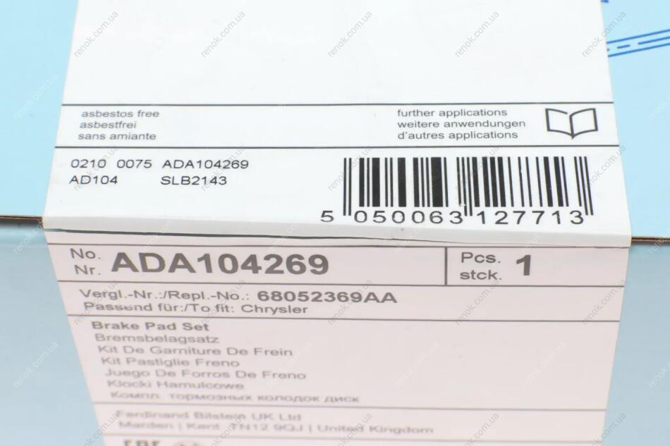 Комплект гальмівних колодок з 4 шт. дисків BLUE PRINT ADA104269 (68052369AA, 68052370AA, 68052370AB)